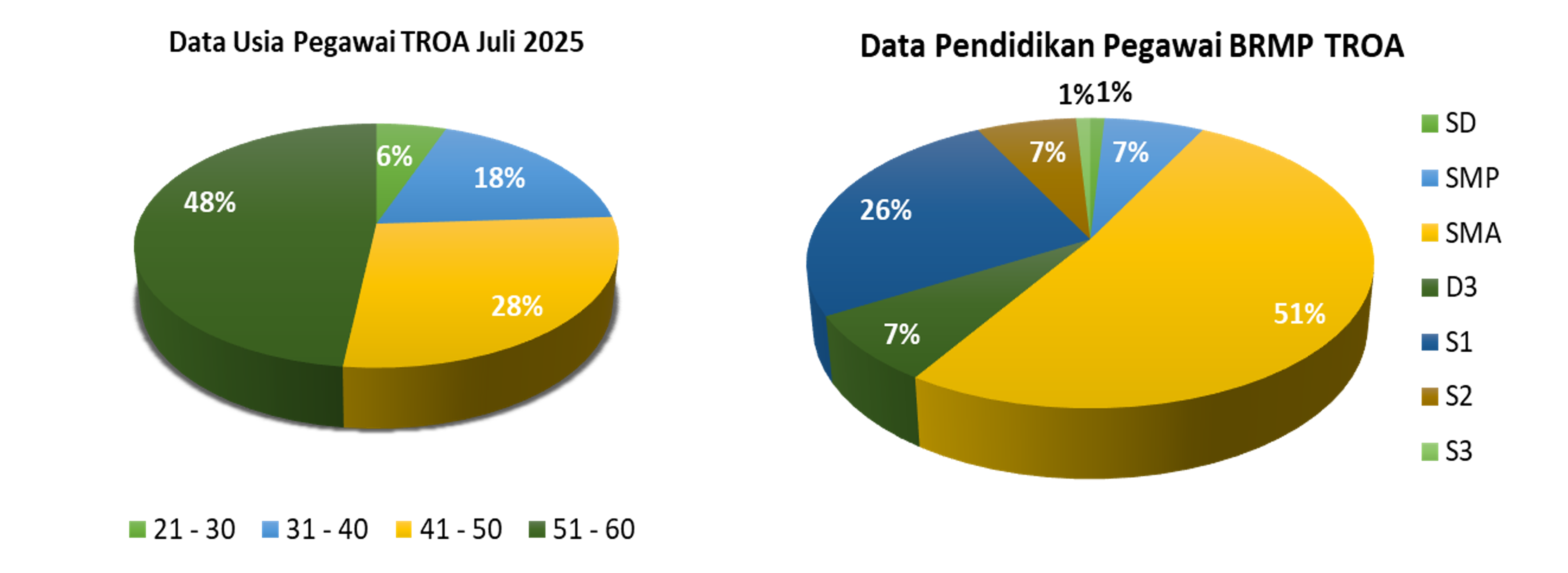 BRMP TROA didukung oleh 108 sumber daya manusia (SDM) untuk mendukung tugas dan fungsi. SDM tersebut terdiri atas 88 PNS, 12 PPPK, 8 CPNS, dan 60 PPPK Paruh Waktu.